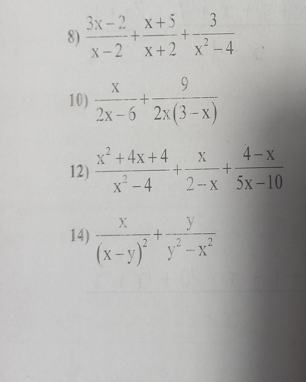 `(x^2+4x+4)/(x^2-4) + x/(2-x) + (4-x)/(5x-10)(đkxđ:x ne +- 2)`