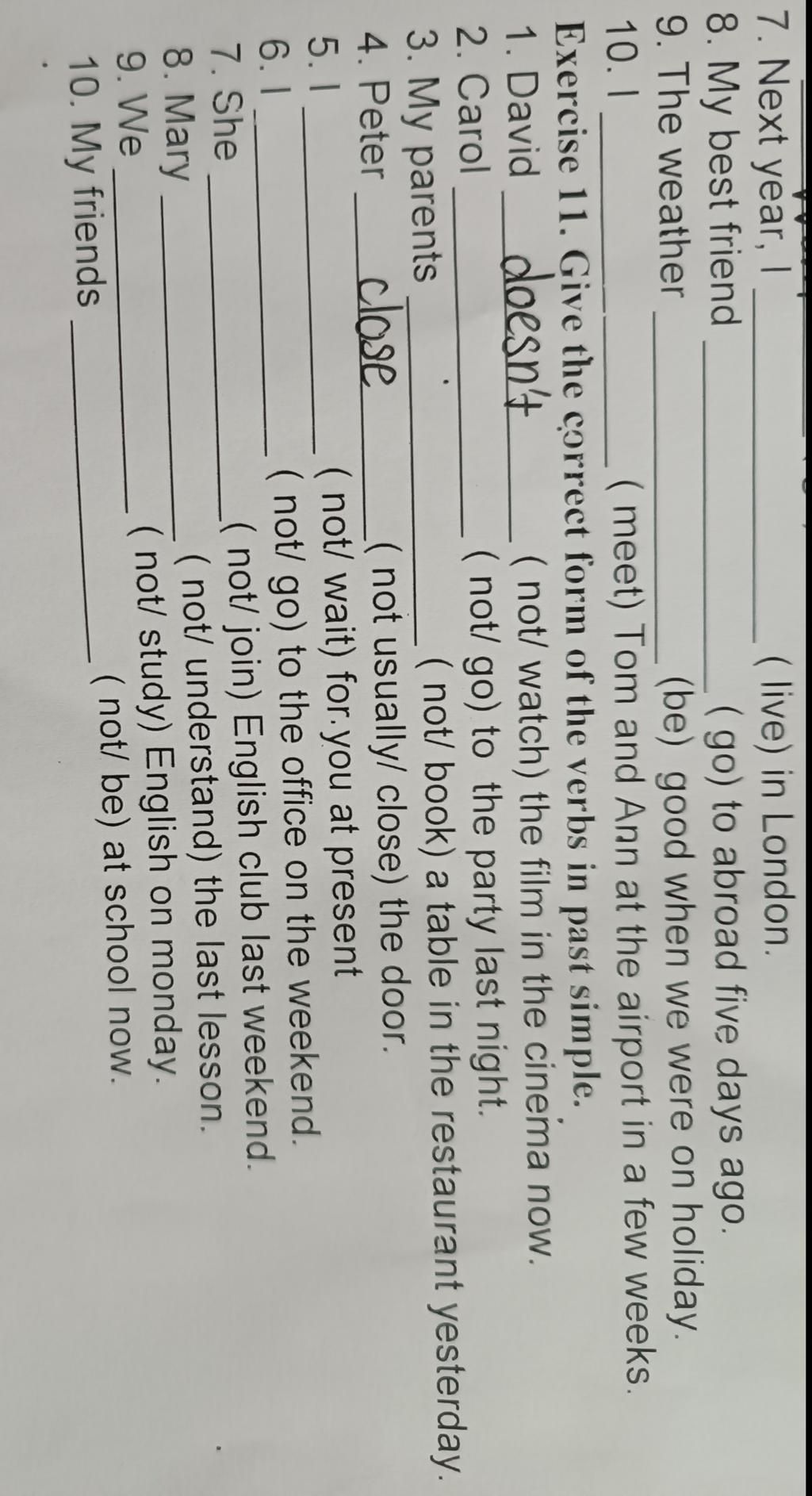 `-` DHNB: yesterday `->` QKĐ: (-) S + did not/didn't + V-inf