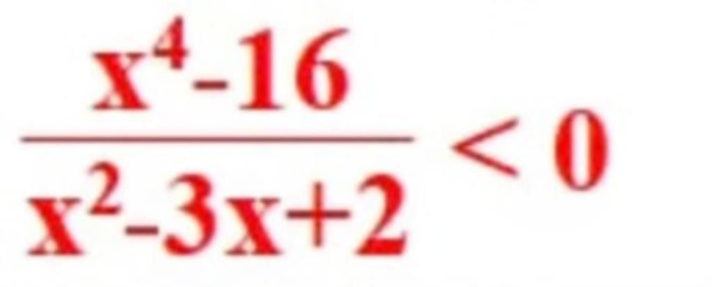 $\dfrac{x^4 - 16}{x^2 - 3x + 2} < 0$