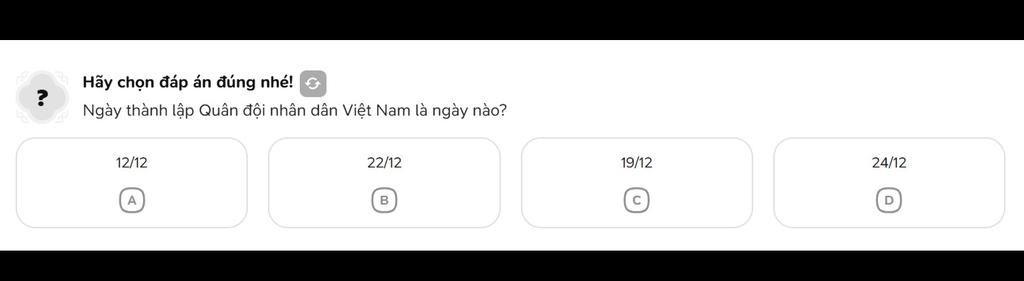Quân đội nhân dân Việt Nam được thành lập ngày `22//12//1944`
