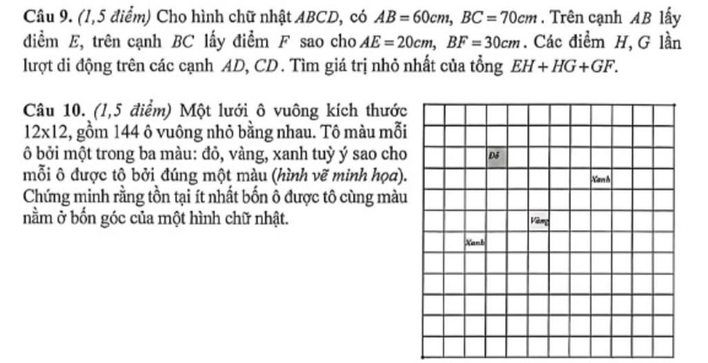 Câu 9. (1,5 điểm) Cho hình chữ nhật ABCD, có AB=60cm, BC =70cm . Trên cạnh AB lấy