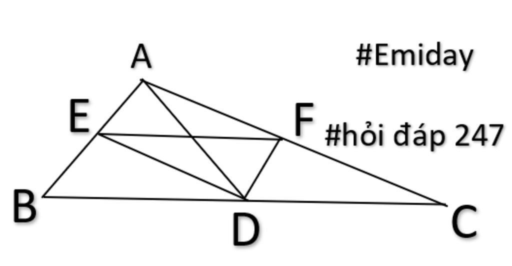 Cho AD là trung tuyến của △ABC. Dựng tia phân giác của ADB \cắt AB tại E. Dựng tia phân giác của ADC \cắt AC tại F. Chứng minh rằng EF//AB. giúp vs ạ