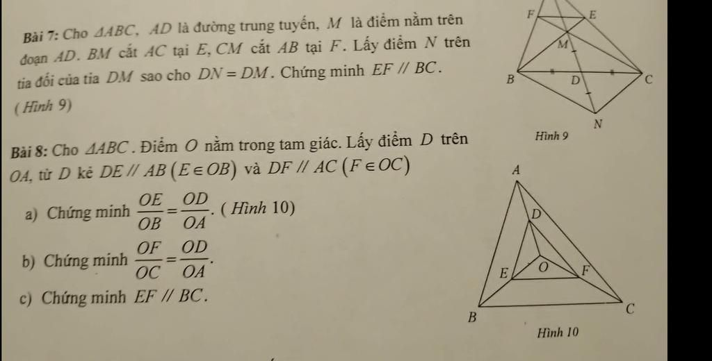 Xét `ΔBOC` ,có : `(OE)/(OB)=(OF)/(OC)` nên theo định lí Thalès đảo