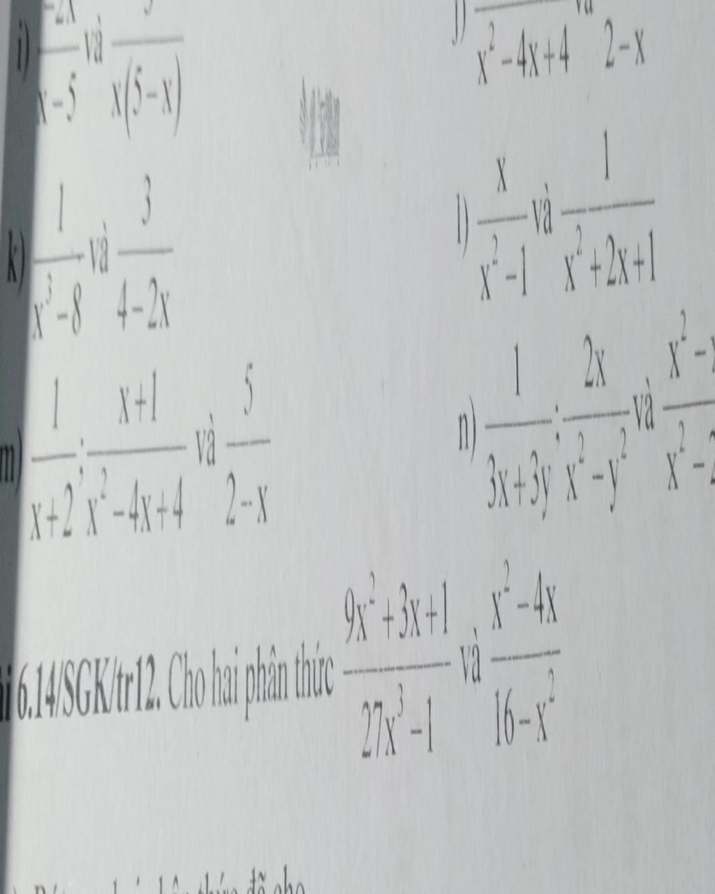 `1/(x^3-8)` và `3/(4-2x)` `MTC : 2(x-2)(x^2 + 2x+4)`