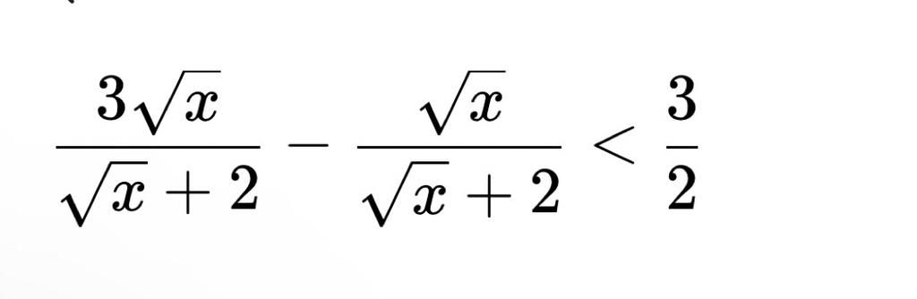 $\displaystyle \frac{3\sqrt{x}}{\sqrt{x}+2} - \frac{\sqrt{x}}{\sqrt{x}+2} < \frac{3}{2}$