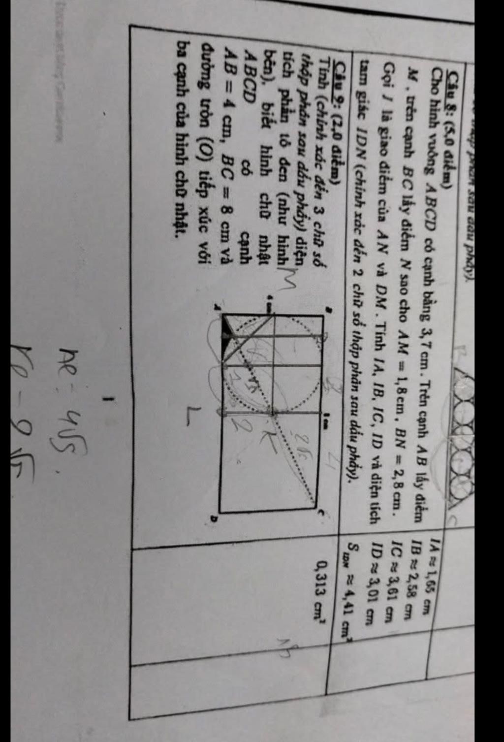 Gọi I là giao điểm của AN và DM . Tính IA, IB, IC, ID và diện tích |