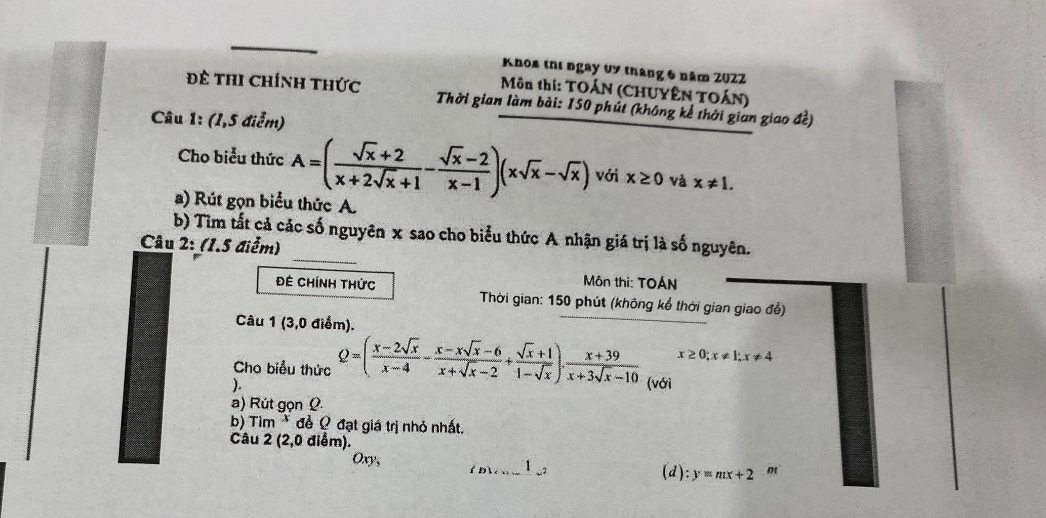 `Q = (xsqrt(x) - x - 4sqrt(x) + 4)/((sqrt(x) - 1)(sqrt(x) + 2)) . (x+39)/((sqrt(x) - 2)(sqrt(x) + 5))`