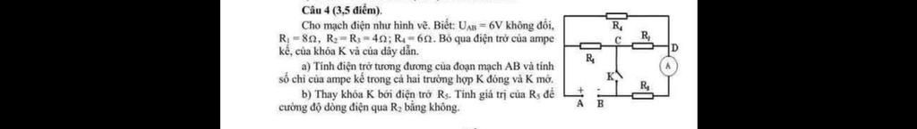 K mở, mạch gồm: (R4 // (R1 nt R2)) nt R3