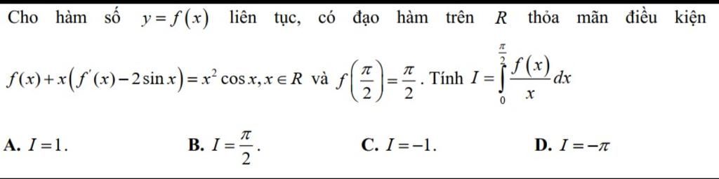 `I = int_{0}^(pi/2) ( f(x))/x dx = int_{0}^(pi/2) sin x dx = -cos x |_{0}^(pi/2) = 1`