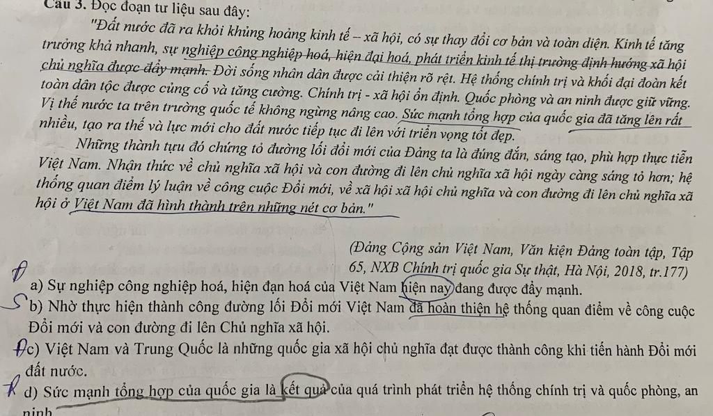 `->` "Những thành tựu đó chúng ta đường lối đổi mới của Đảng là đường đắn, sáng tạo, phù hợp thực tiễn Việt Nam... Nhận thức về chủ nghĩa xã hội và con đường đi lên chủ nghĩa xã hội ở Việt Nam đã hình thành trên những nét cơ bản."