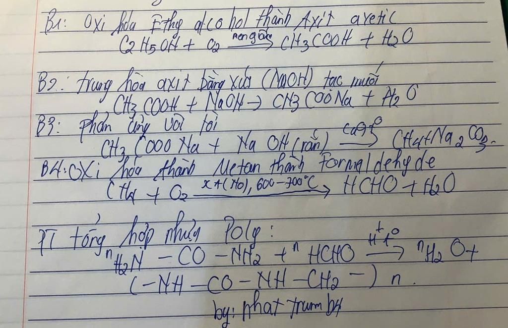 Từ ethyl alcohol phân đạm ure và các chất vô cơ chất xúc tác cần thiết khác hãy viết phương trình điều chế keo dán ure-formaldehyde