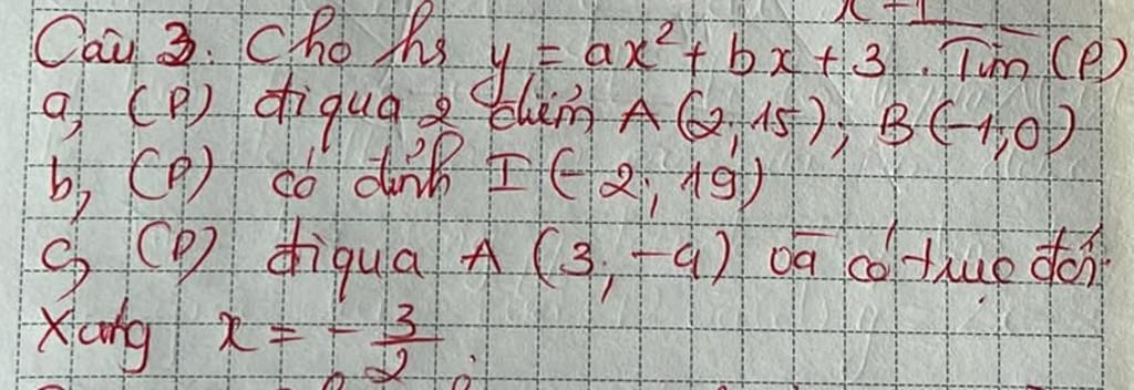 `(P)` đi qua `A(3; -4)` và có trục đối xứng `x = -\frac{3}{2}`
