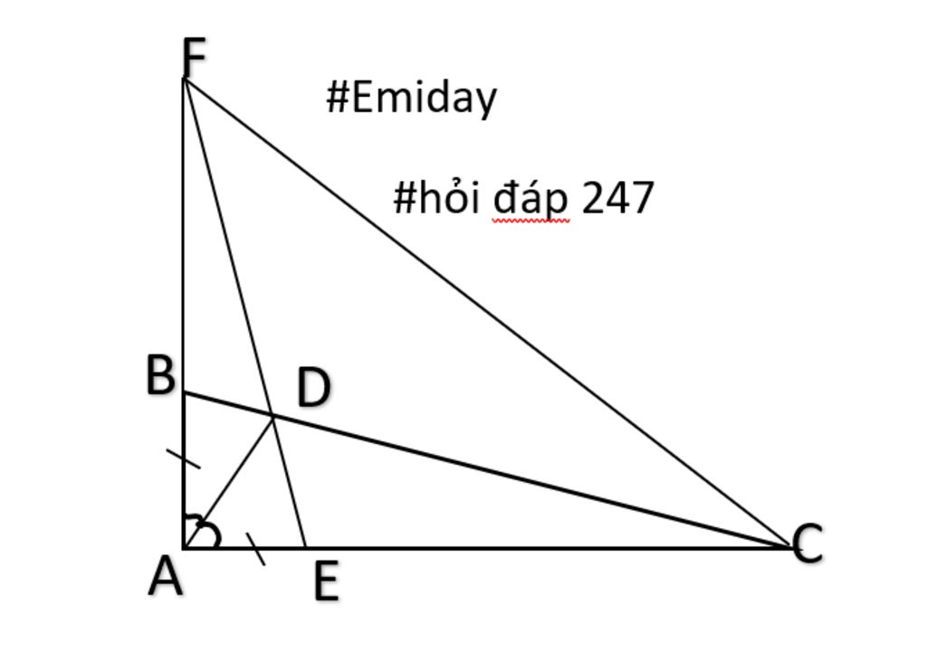 Cho tam giác ABC vuông tại A. Kẻ AD là tia p/g của góc BAC . Trên cạnh AC lấy điểm E sao cho AB=AE . Gọi F là giao điểm của AB và DE. Chứng minh tam giác AFC cân