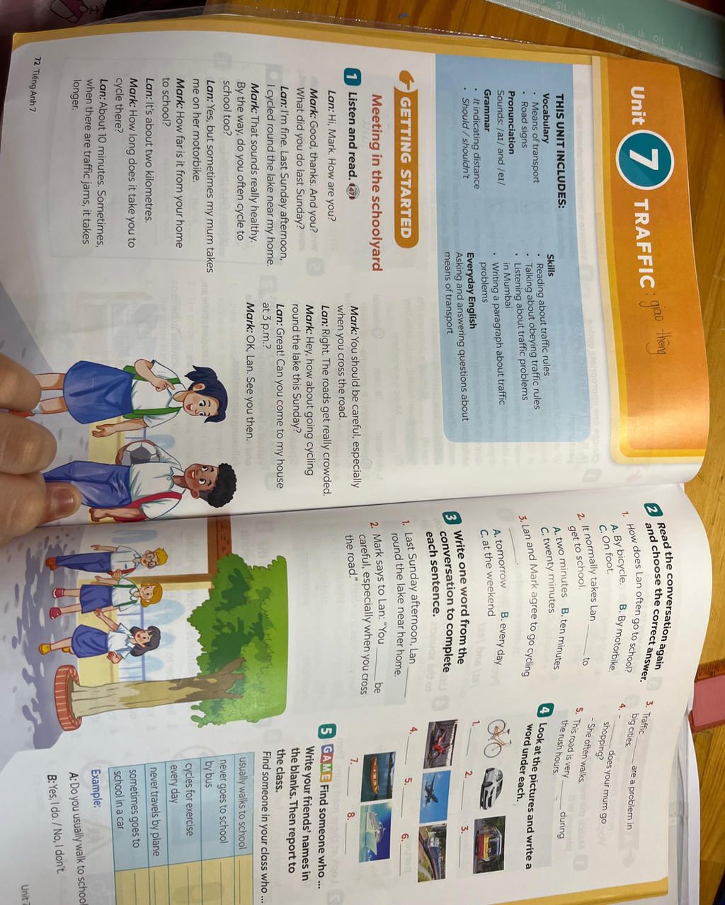 By the way, do you cycle to school too? - Yes,....