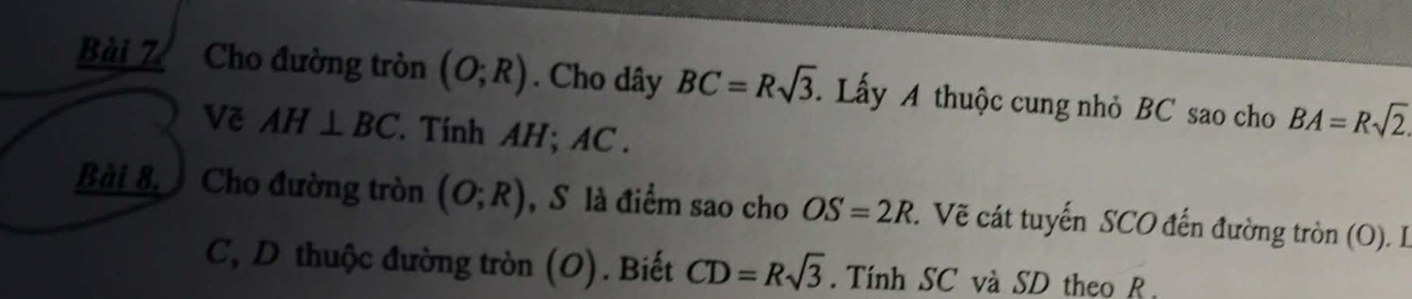 Bài 8. Cho đường tròn (O;R), S là điểm sao cho OS = 2R. Vẽ