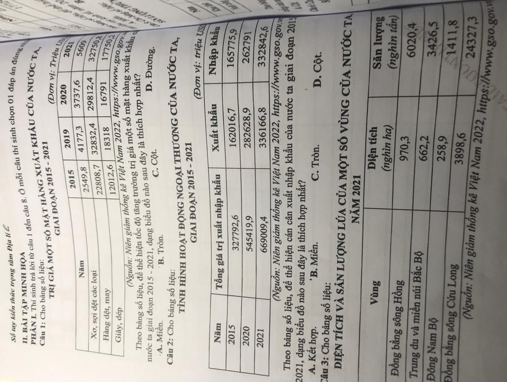 Câu 1: Cho bảng số liệu: