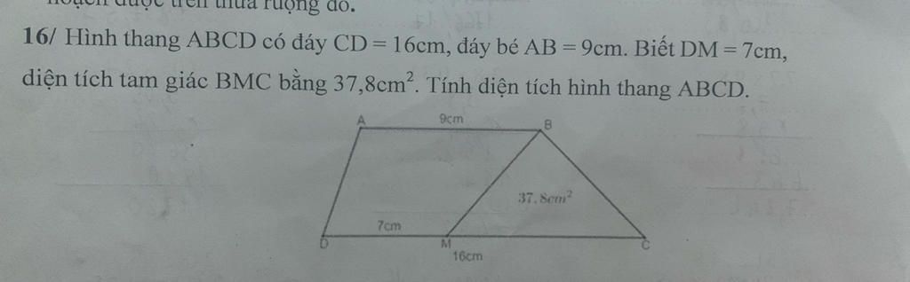 S_(ΔBMC)=BK xx MC : 2=BK xx (16-7) :2 = BK xx 9/2=37,8 (cm^2)`