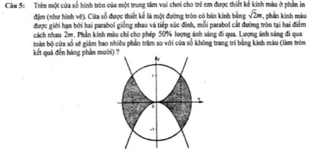 `=>S_(trắng)=S_(tròn)-S_(đen)=π(sqrt2)^2-(π-2/3)=π+2/3(m^2)`