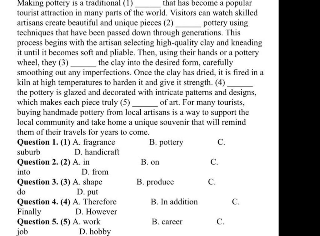 `=>` Nên đáp án đúng cần điền vào ô trống số (2) sao cho phù hợp là of (vì nó là một cụm từ "pieces of pottery" -> "nghĩa của cụm từ đó là: Những món đồ gốm")