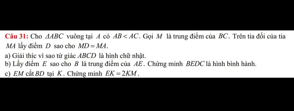 Suy ra EK = 2 KM.