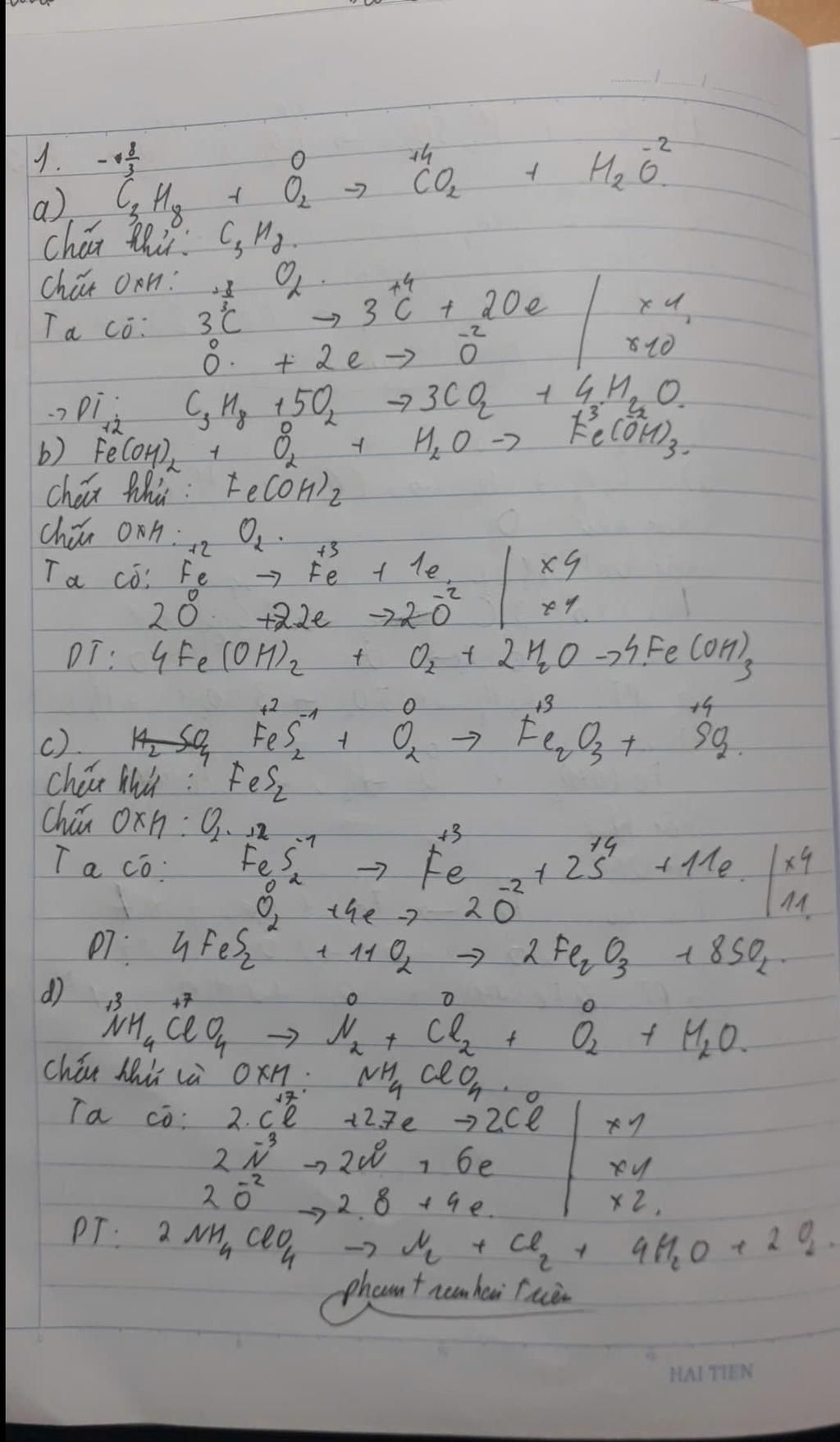 Oxi hóa: `2N^(-3)+2Cl^(+7) → N_2^(0)+Cl_2^0+20e` xx1