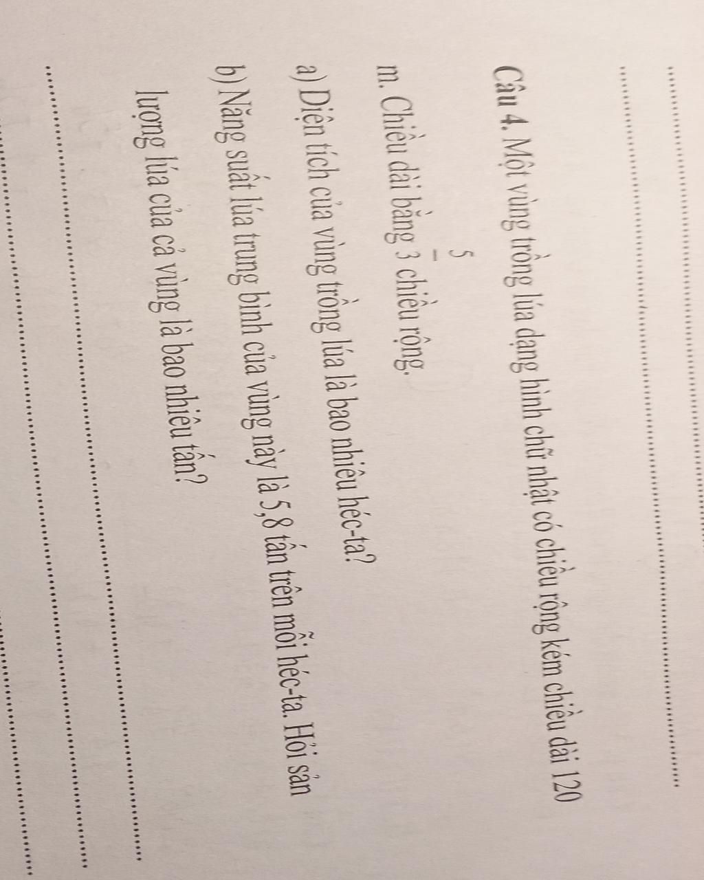 `b)` Năng suất là 5.8 tấn/ha. Tổng sản lượng lúa là: