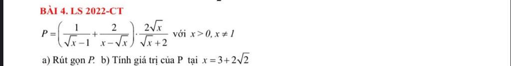 a) `P = (1/(sqrt(x) - 1) + 2/(x-sqrt(x))) . (2sqrt(x))/(sqrt(x) + 2) (x > 0, xne 1)`