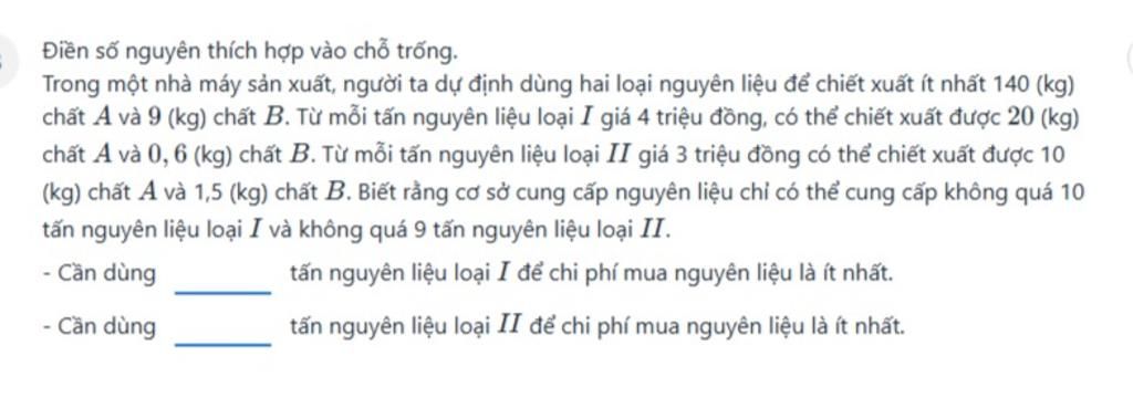 Hàm chi phí cần nhỏ nhất: `C = 4x + 3y`