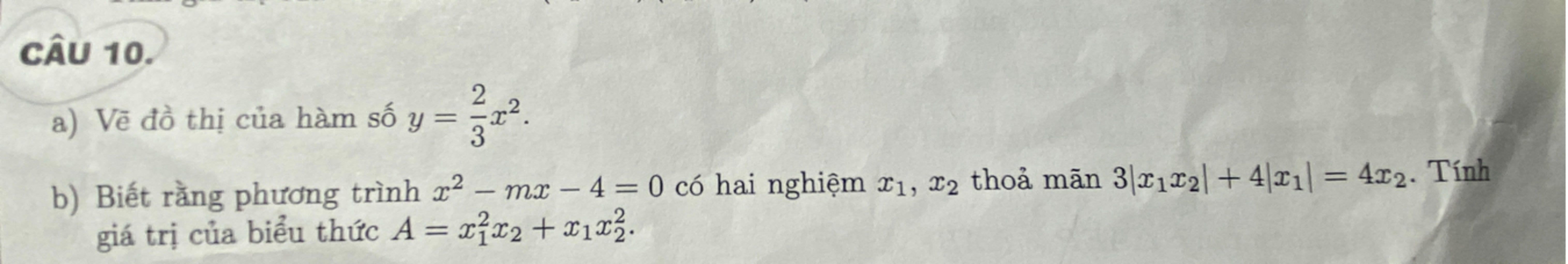 `Δ = (-m)^2 -4.1.(-4) = m^2 + 16 > 0 ⇒ pt` có 2 nghiệm phân biệt