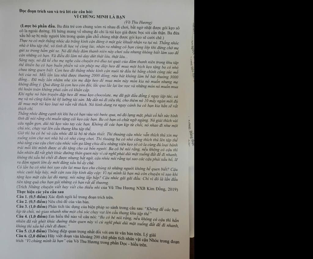 Đọc đoạn trích sau và trả lời các câu hỏi: