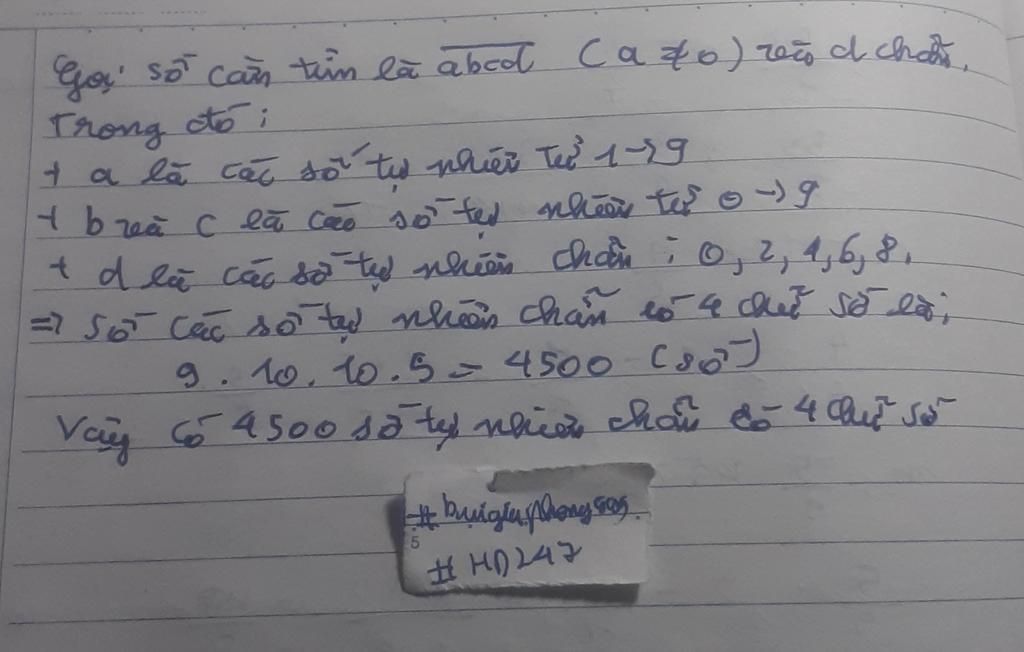 Số các số tự nhiên chẵn có bốn chữ số là :