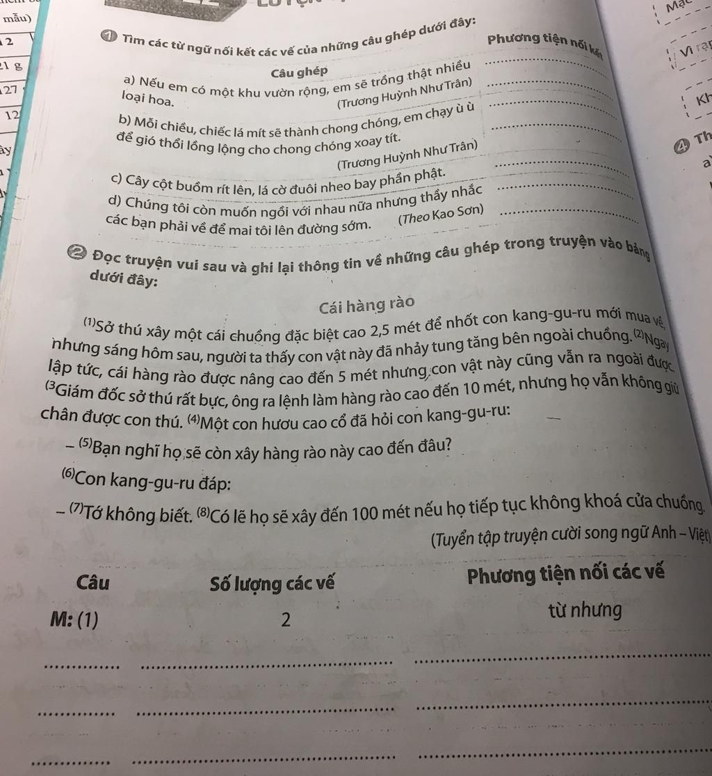 Câu (1): " Sở thú xây một cái chuồng đặc biệt cao 2,5 mét để nhốt con kang-gu-ru mới mua về.