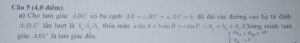 Mà theo đề ta có `: aSinA+bSinB+cSinC=h_a+h_b+h_c`