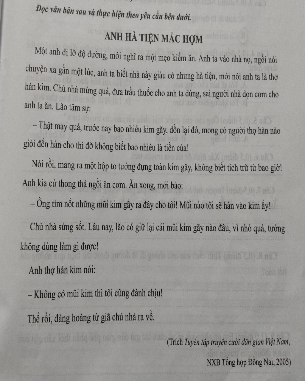 `***` Khéo léo, hiểu tâm lí người khác biết chủ nhà "giàu có nhưng hà tiện" nên giả làm " thợ hàn kim ".