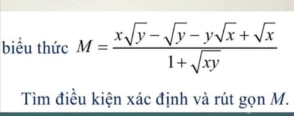` M = (x sqrt{y} - sqrt{y} - y sqrt{x} + sqrt{x})/(1 + sqrt{xy}) - ` đkxđ: ` x ≥ 0 ; y ≥ 0 `