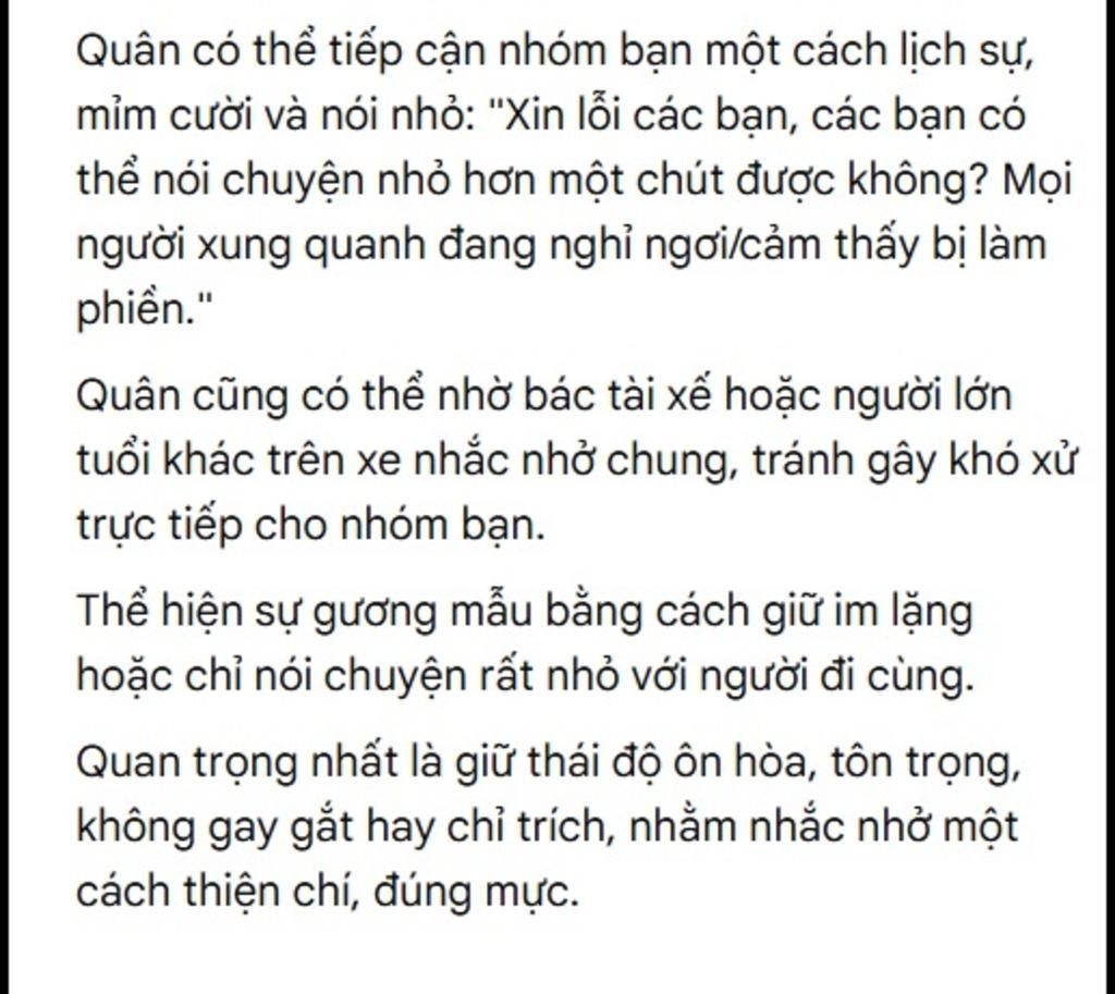 Mọi người nói nhỏ lại được không? Trên xe buýt cần giữ trật tự ạ.