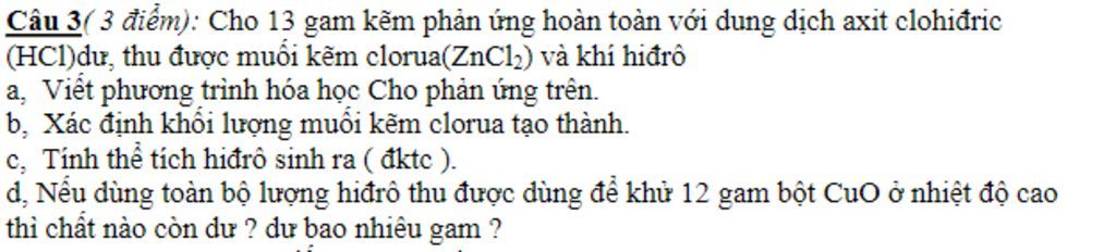 $a,PTPƯ:Zn+2HCl\xrightarrow{} ZnCl_2+H_2↑$