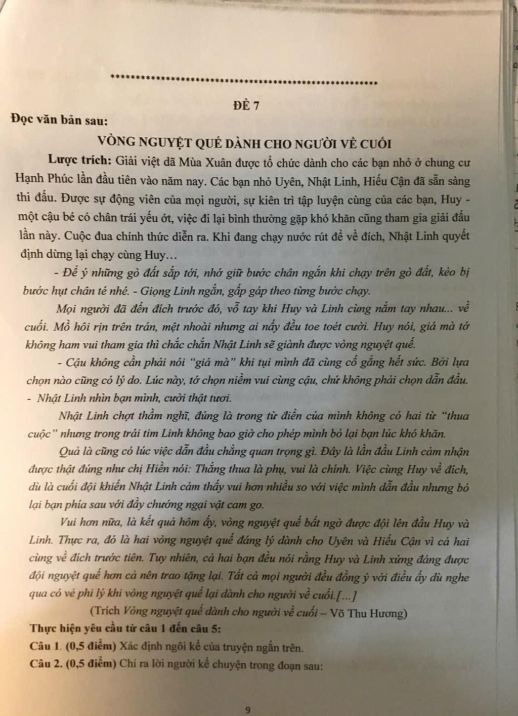 Câu 5. (1,0 điểm Thông điệp em tâm đắc nhất sau khi đọc văn bản trên? Vì sao?
