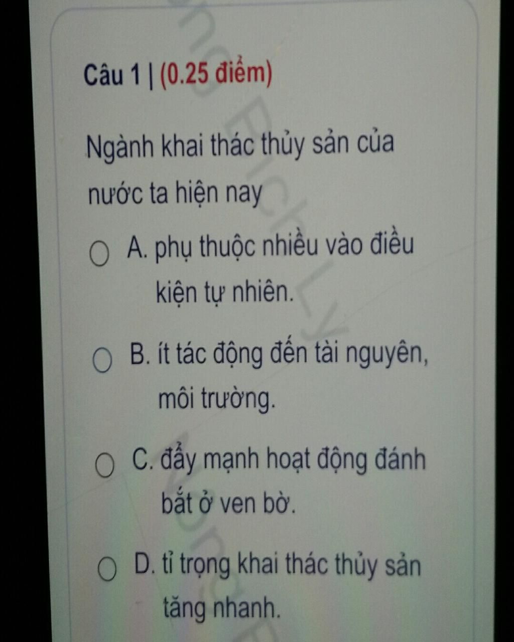 $\text{D.}$ Tỉ trọng khai thác thủy sản tăng nhanh.
