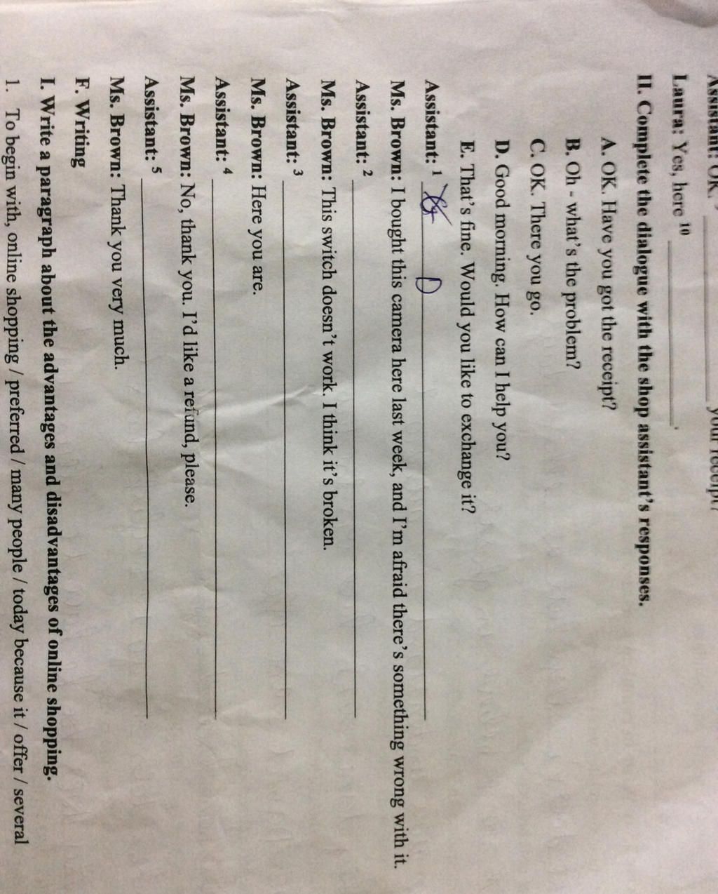 ( 3 ) : OK . Have you got the receipt ? ( A )