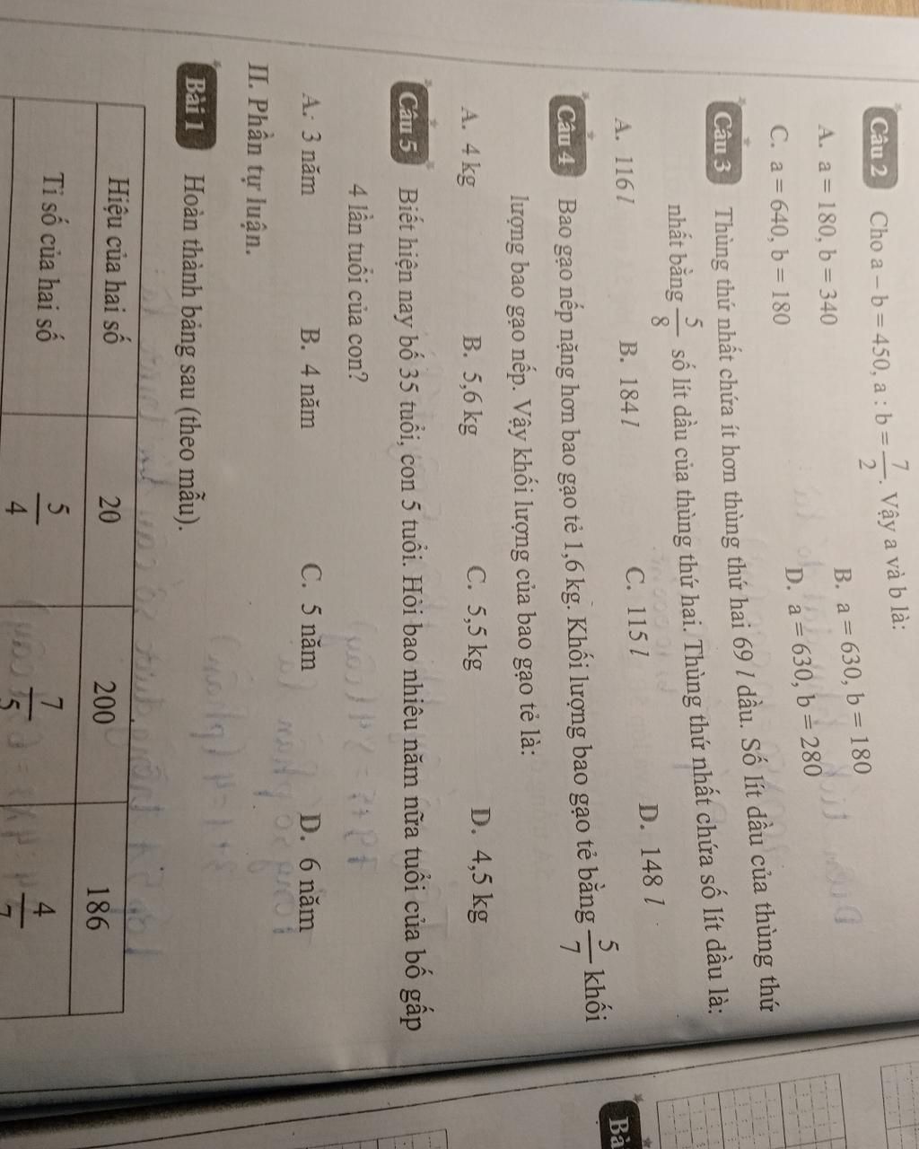 $\text{- Số a là: 450 : (7 - 2) x 7 = 630}$