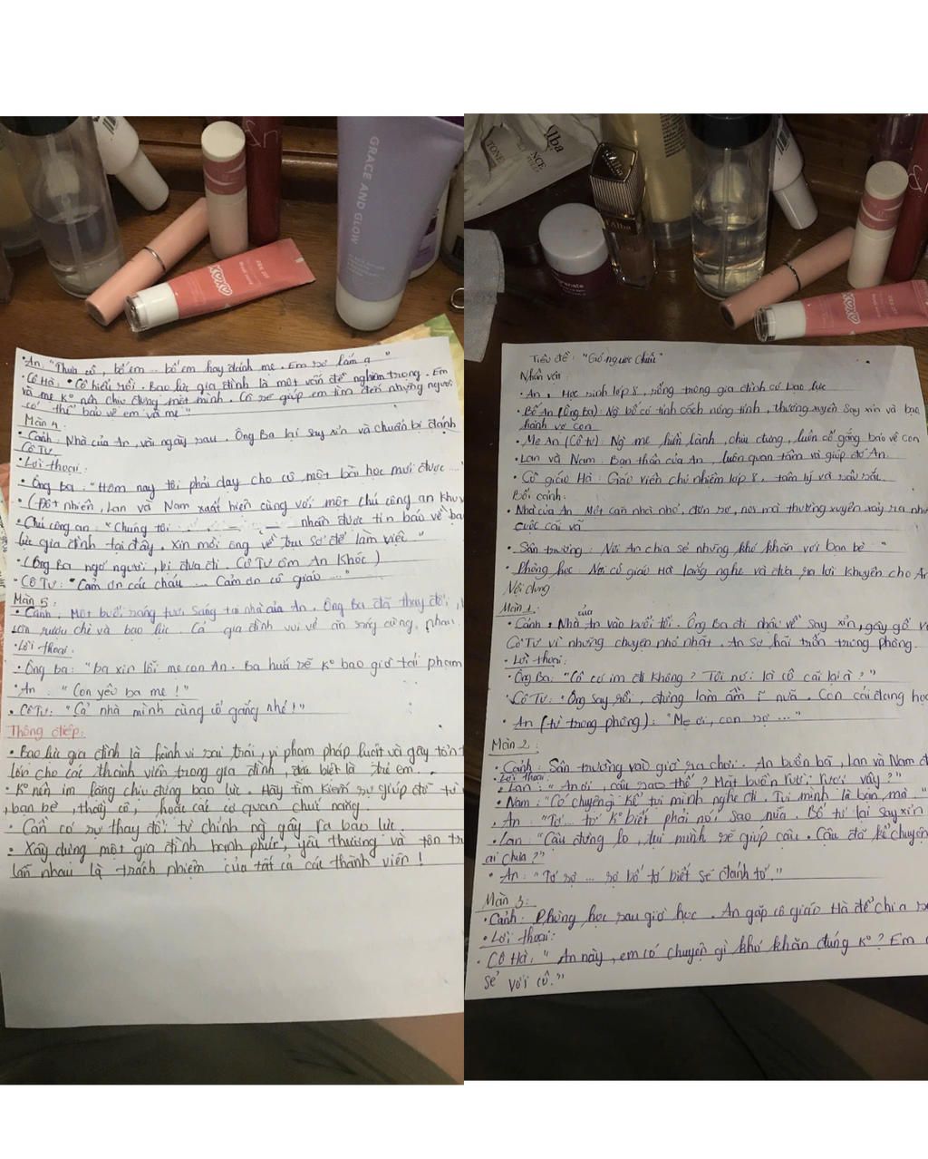 Đây là kịch bản “ bạo lực học đường “ của tổ mình . Mình muốn thêm vài lời thoại hay hấp dẫn để chèn vào . Giúp mih lấy 10₫ với ạ