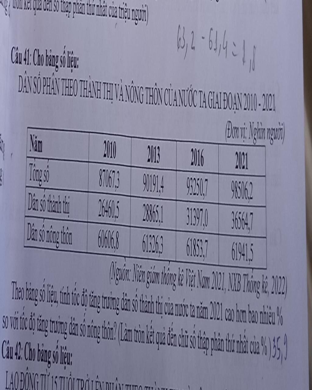 Tốc độ tăng trưởng thành thị năm 2021 cao hơn tốc độ tăng trưởng nông thôn là :