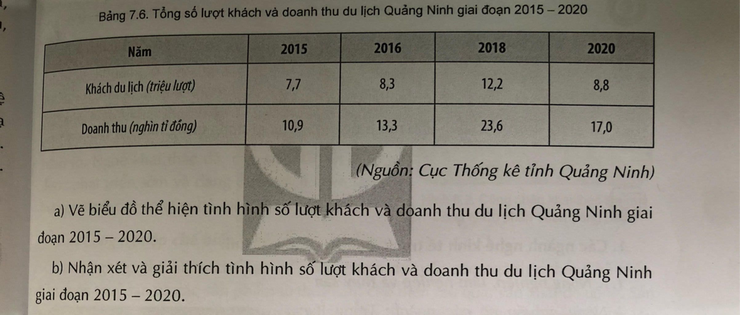 câu b ) tình hình lượng khách và doanh thu từ năm 2015 càng đi lên tới năm 2018 . nhưng đến năm 2020 do dịch bệnh nên ko còn nhiều du khách nữa