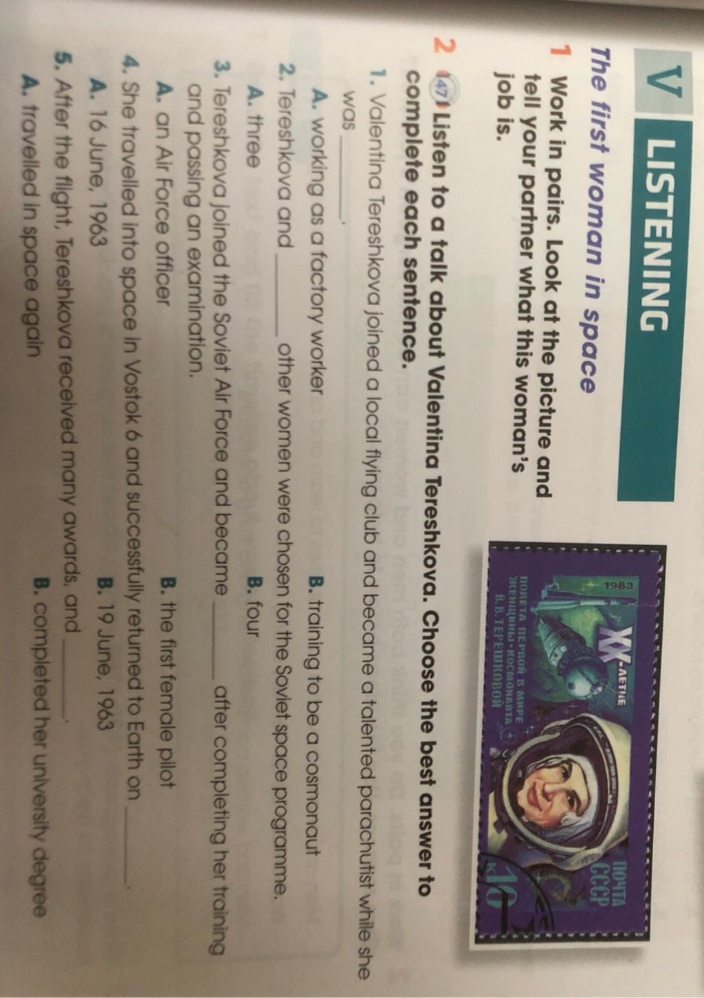 2 (47) Listen to a talk about Valentina Tereshkova. Choose the best answer to