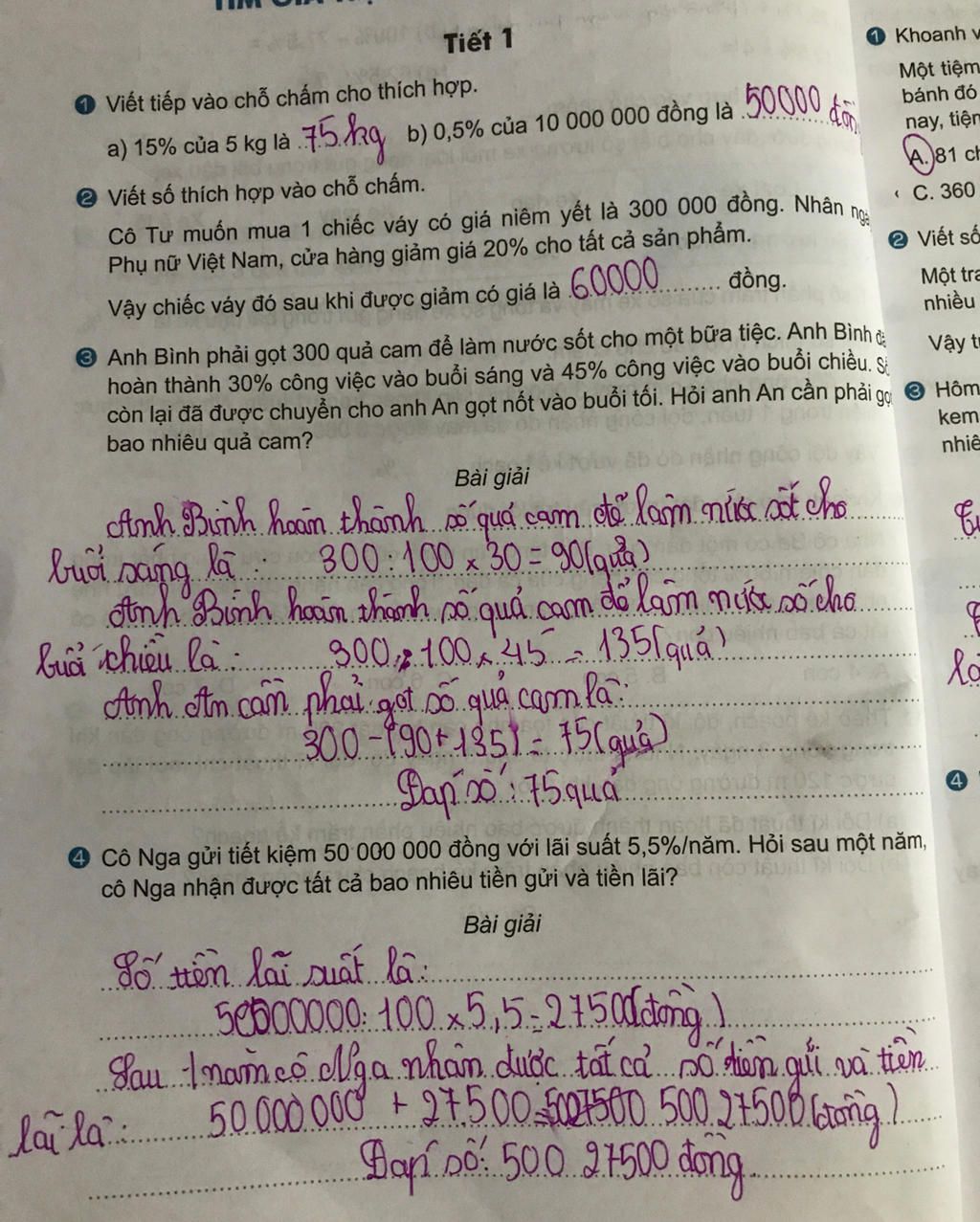 1) a) `15%` của `5kg` là : `5`x`15: 100 = 0,75 (kg)`