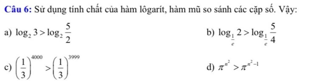 Nên: `\pi^{\pi^{2}}>\pi^{\pi^{2}-1}`