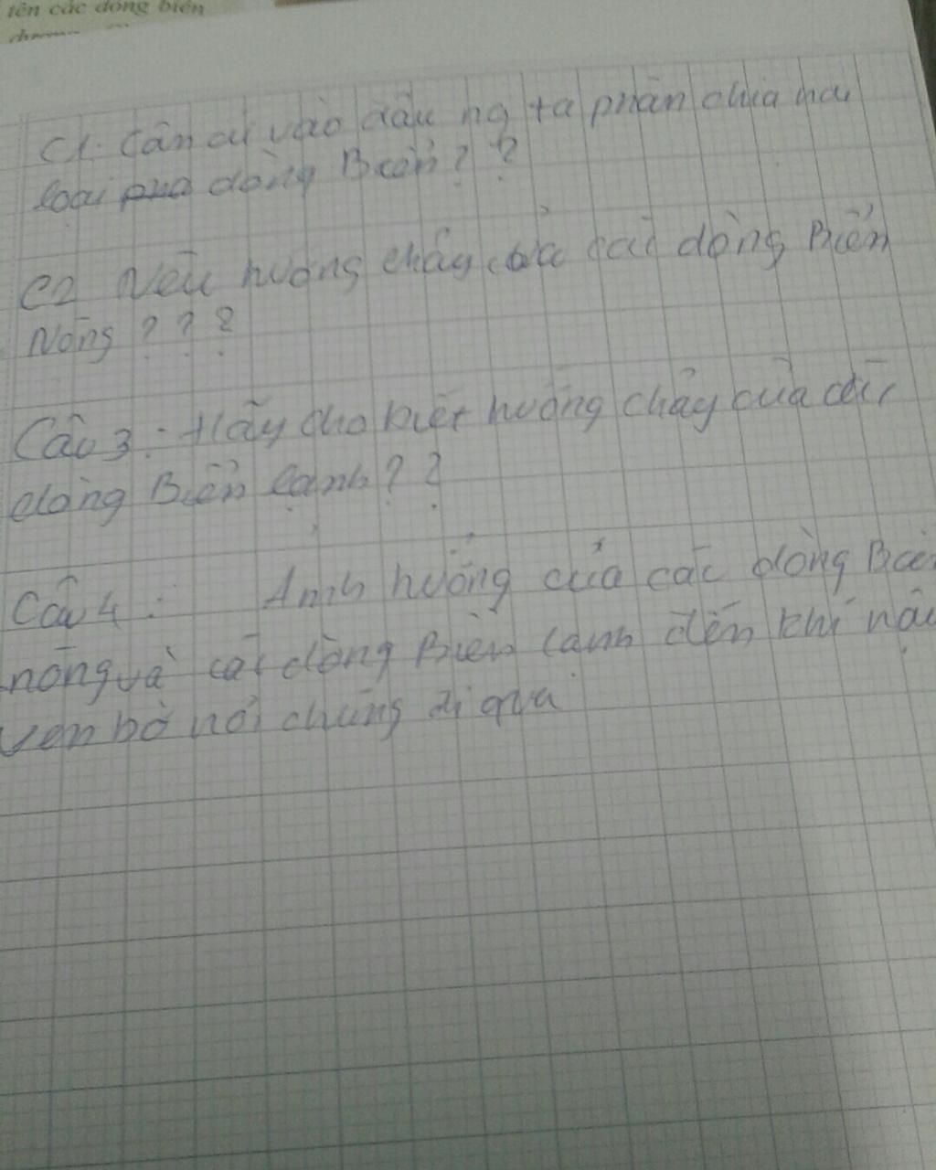 + Một số dòng biển lạnh xuất phát từ vùng cực chảy về vùng ôn đới, một sổ khác từ vùng ôn đới chảy về phía Xích đạo.