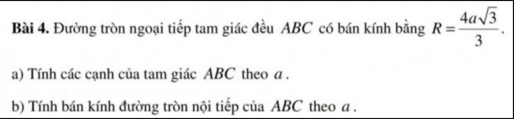 a) Tam giác ABC đều => bán kính đường tròn ngoại tiếp có công thức là