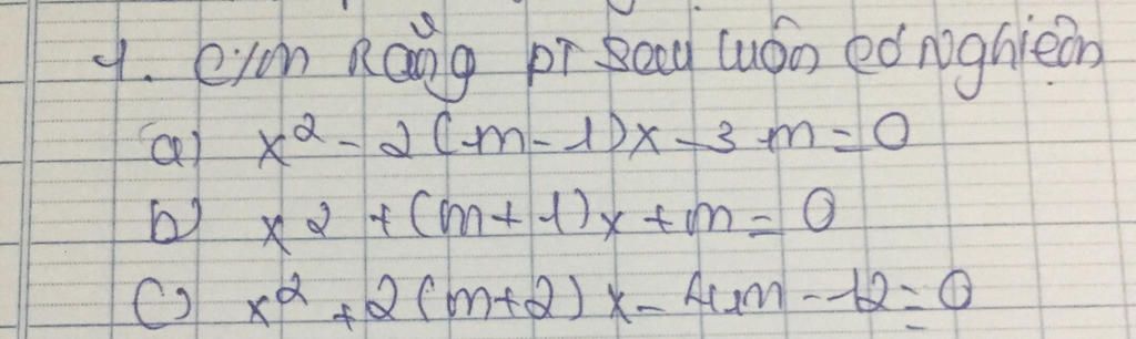 `c)` `x^2 + 2(m+2)x - 4m - 12 = 0`